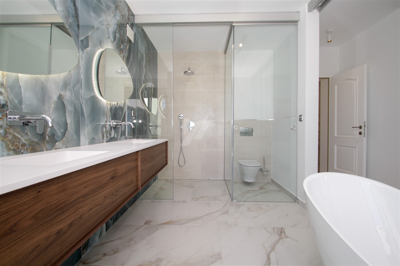 El resto de la propiedad se distribuye en el mismo nivel y consta de cuatro dormitorios dobles y cuatro espectaculares baños todos ellos en suite. Además, el dormitorio principal dispone de un gran vestidor. Las espaciosas habitaciones son prueba de la buena concepción del diseño.