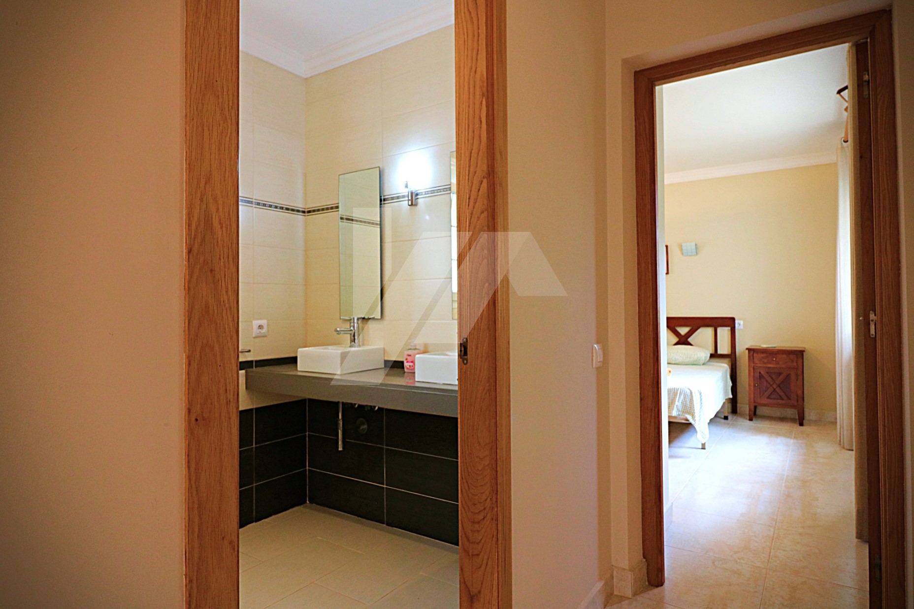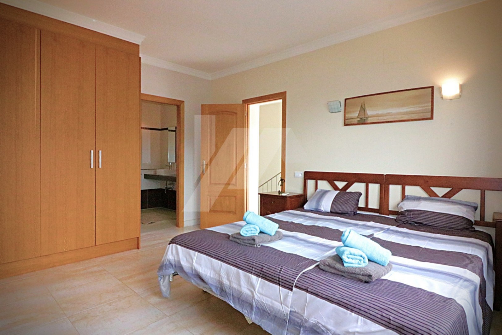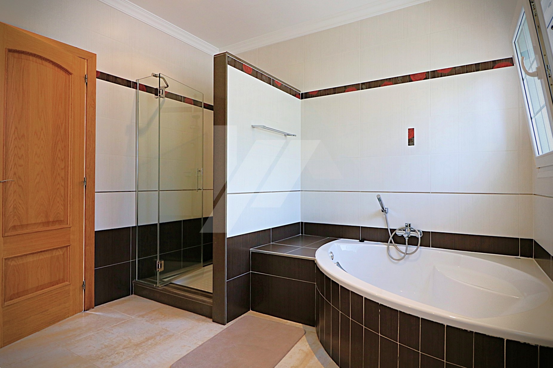 En la planta alta existen dos dormitorios más, cada uno con su propio baño. El dormitorio principal cuenta con un vestidor y un baño en suite con bañera y ducha. El segundo dormitorio dispone de armarios empotrados, baño en suite con bañera y acceso directo a una amplia terraza con impresionantes vistas al mar y al icónico Peñón de Ifach, reconocido monumento natural de la Costa Blanca.