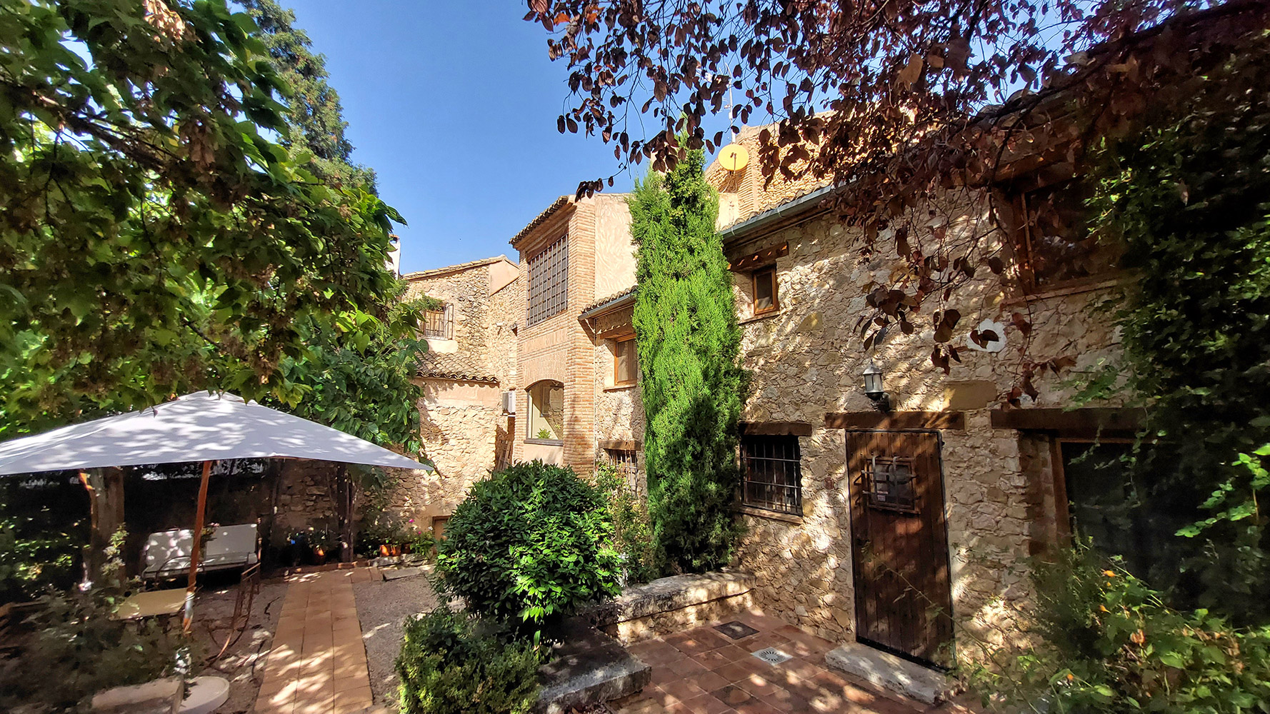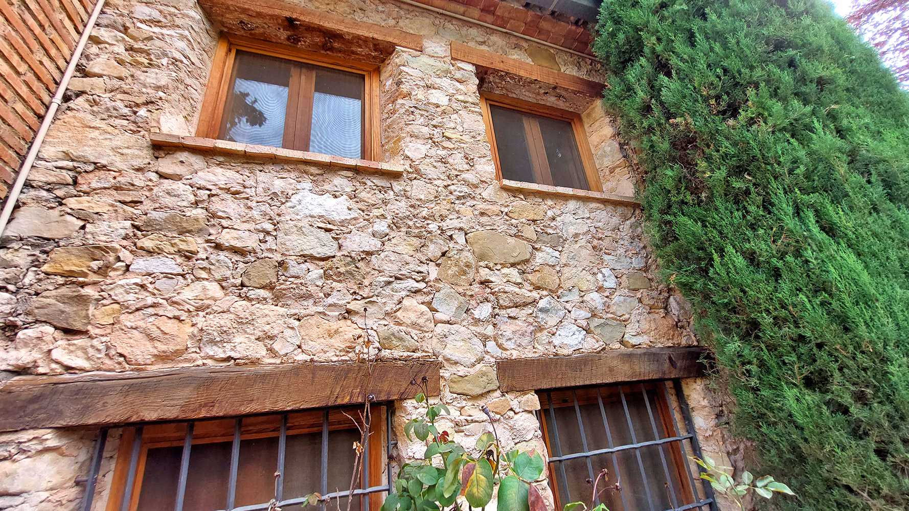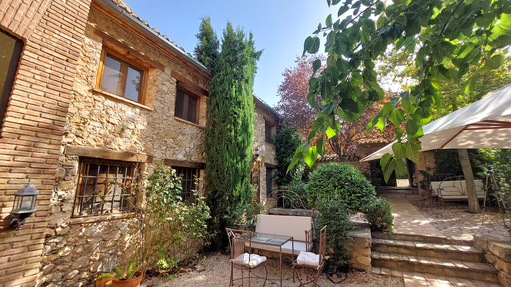Se trata de una masía con más de dos siglos de historia, renovada integralmente en 2001, incluyendo techos, fontanería y electricidad, pero respetando su esencia (muros de piedra, vigas de madera, tejas, suelos de terracota, etc). Tiene una superficie construida de 1.175m2 sobre un terreno de 9.383m2, con atractivas zonas llenas de árboles y vegetación. Una bonita y amplia piscina de 6 x 12m, con varias terrazas y jardines, invita a disfrutar de su hermoso exterior.
