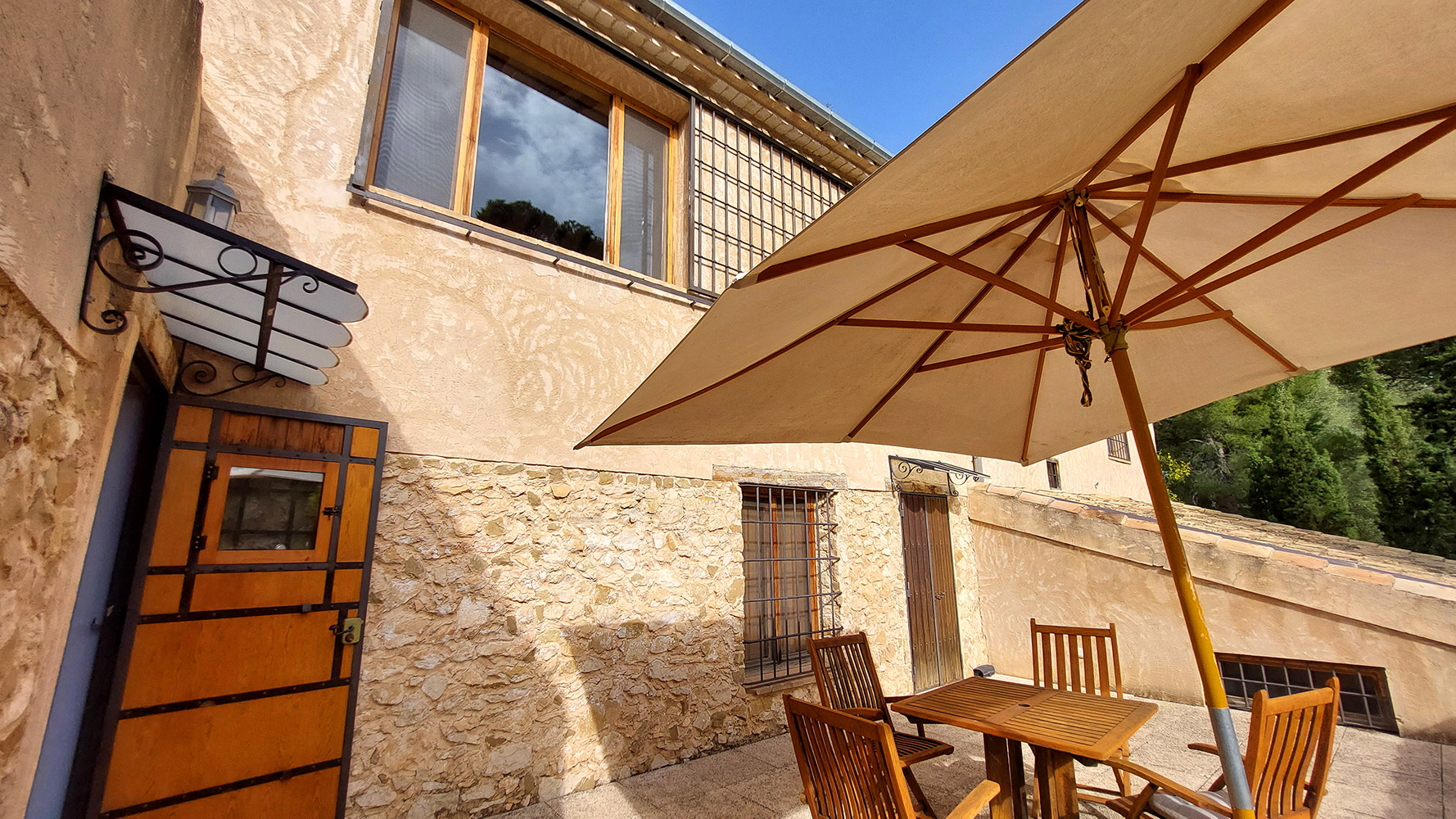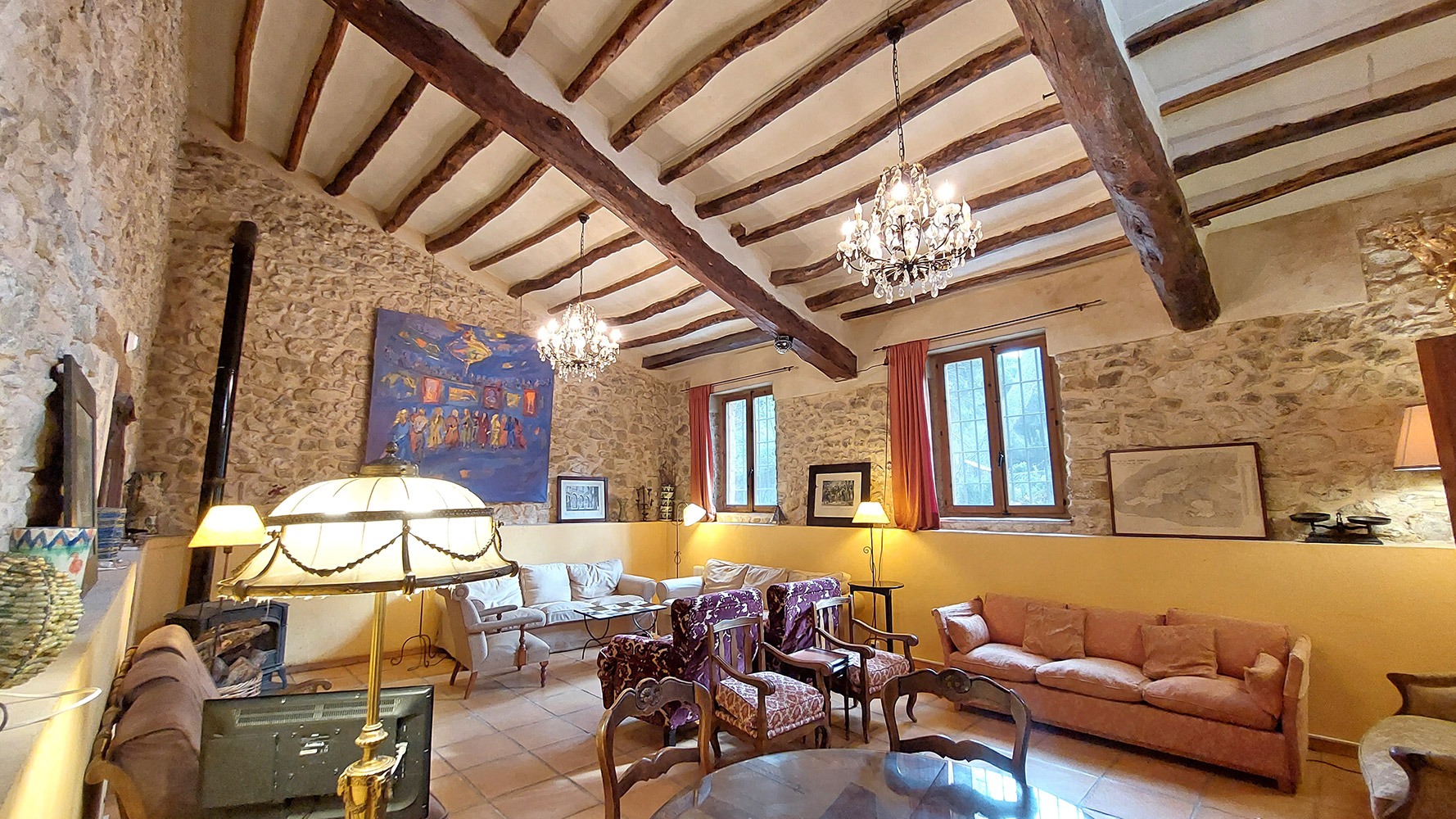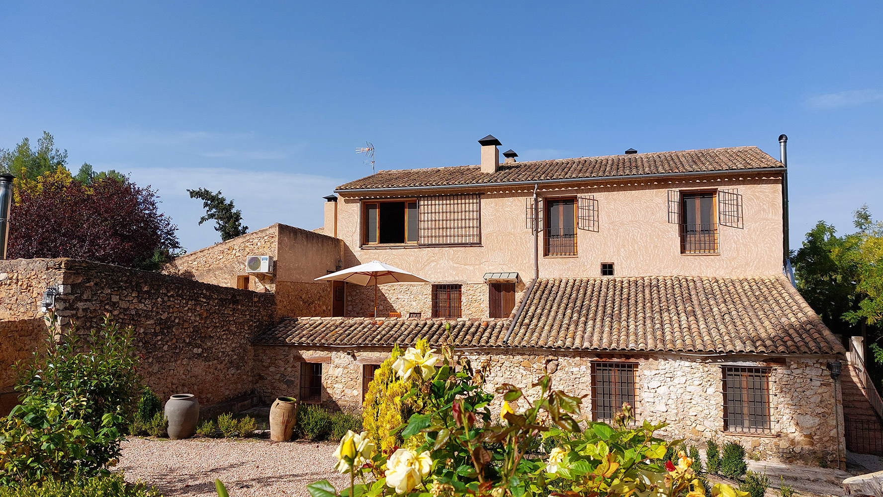 Se trata de una masía con más de dos siglos de historia, renovada integralmente en 2001, incluyendo techos, fontanería y electricidad, pero respetando su esencia (muros de piedra, vigas de madera, tejas, suelos de terracota, etc). Tiene una superficie construida de 1.175m2 sobre un terreno de 9.383m2, con atractivas zonas llenas de árboles y vegetación. Una bonita y amplia piscina de 6 x 12m, con varias terrazas y jardines, invita a disfrutar de su hermoso exterior.