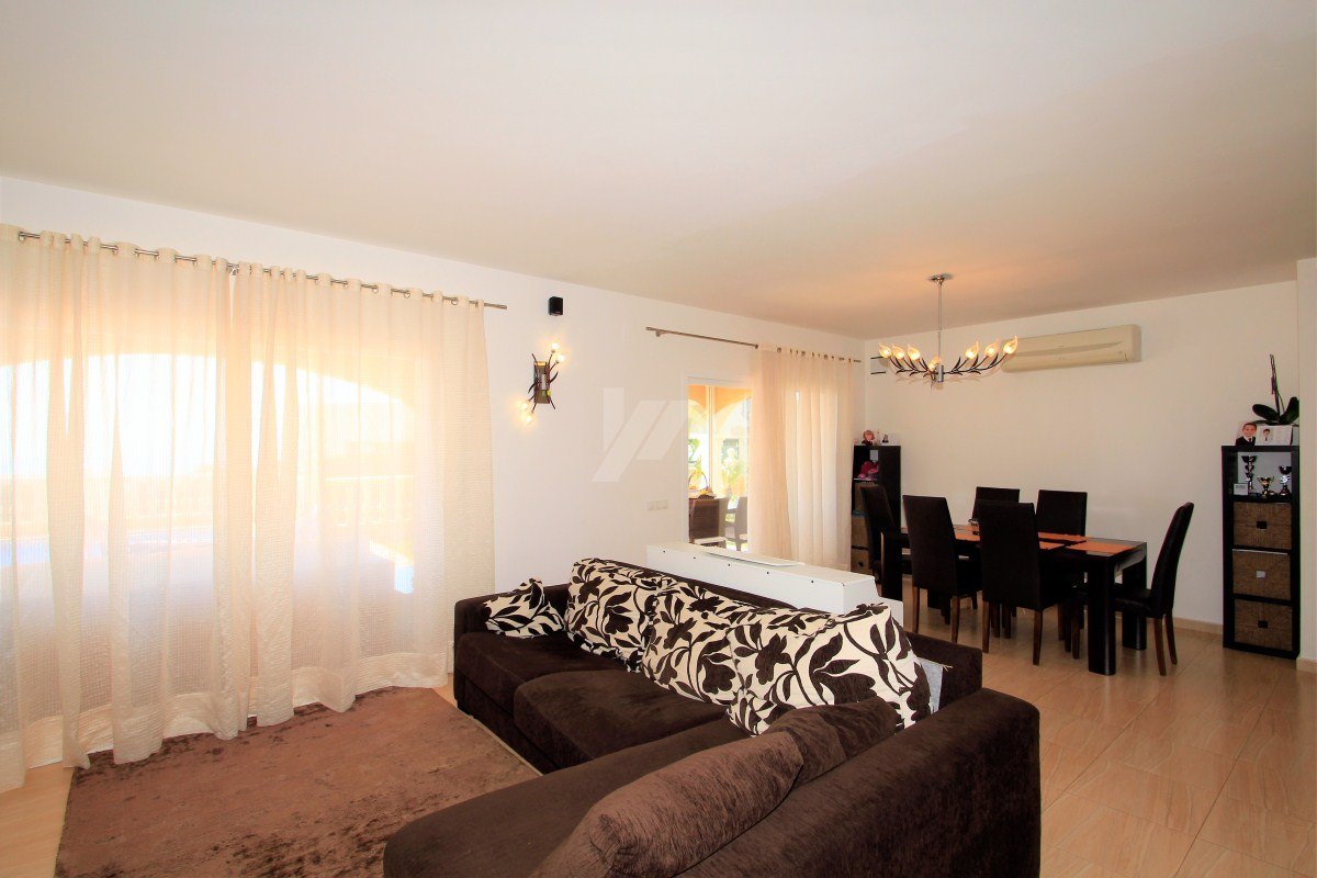 Outside we find the lovely 8×4 meters heated pool with its terraces and low maintenance gardens with fruit trees and grass. There is also a summer kitchen with barbeque area and a poolside shower.