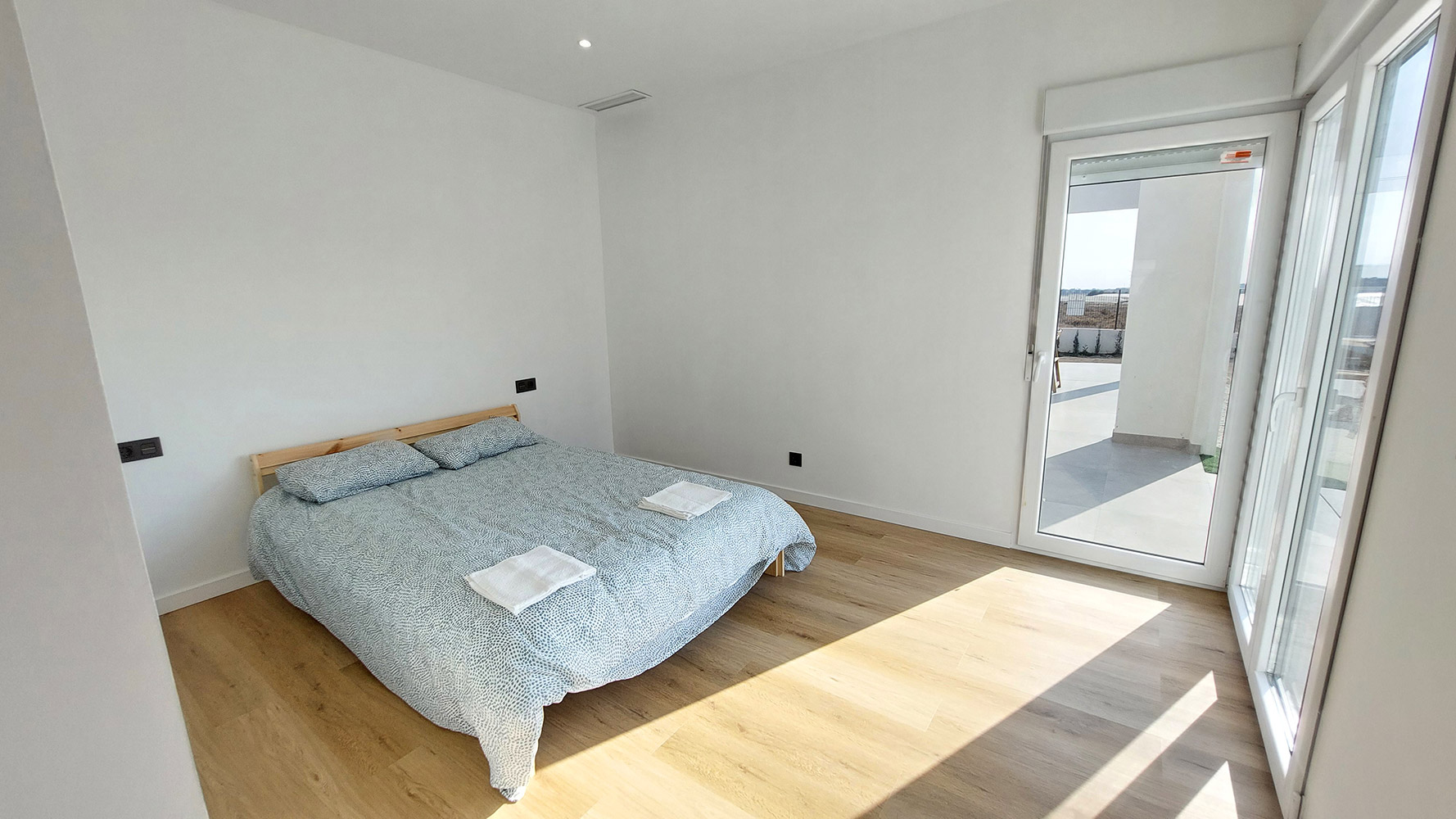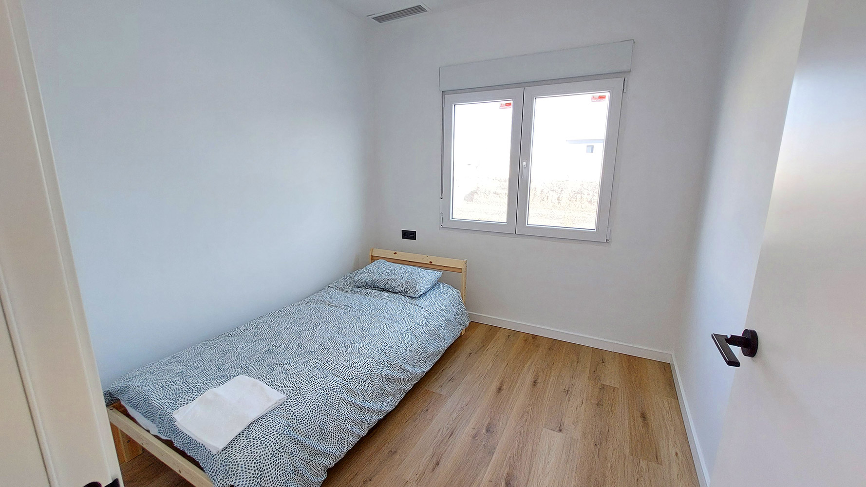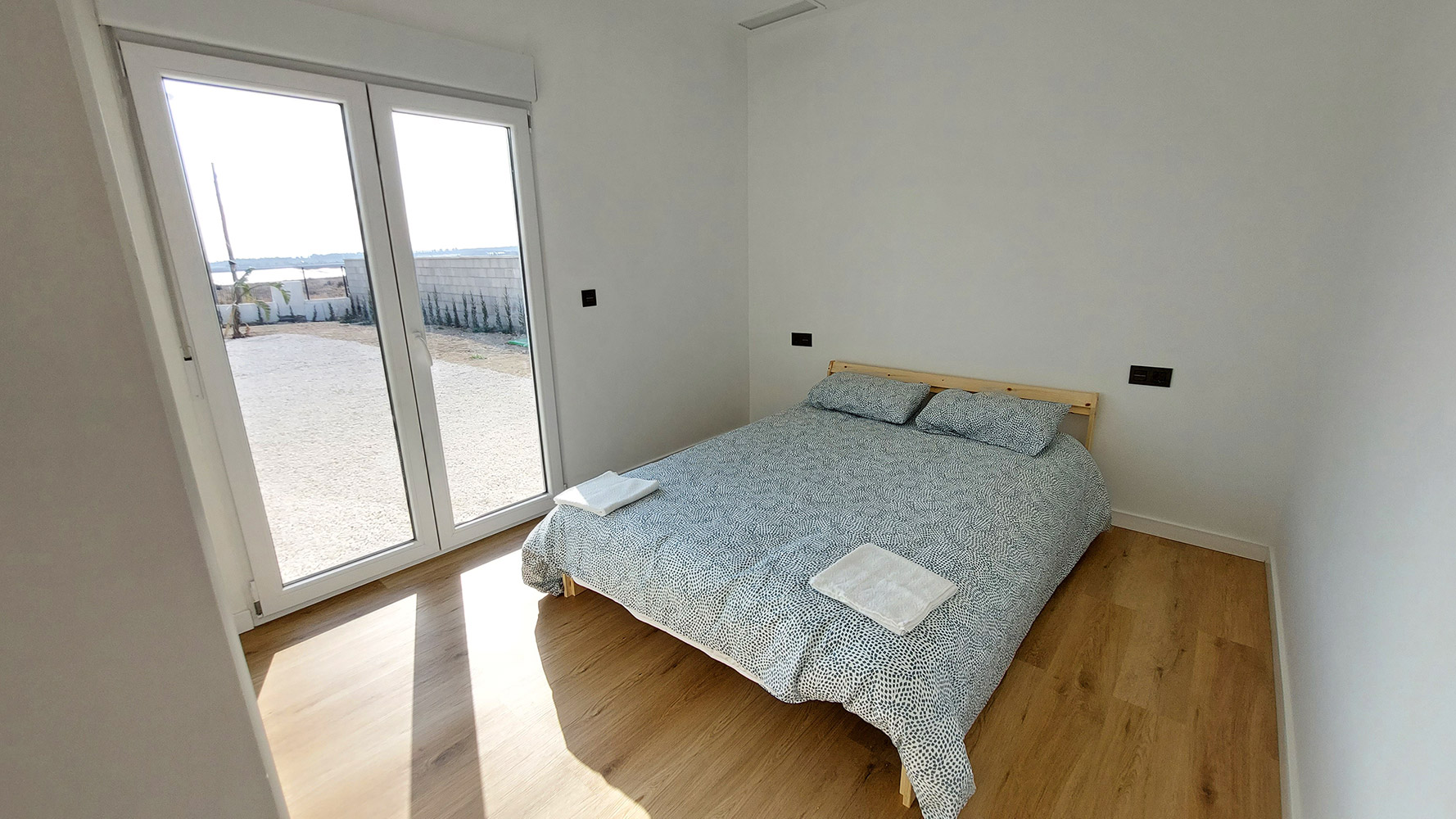The house has a constructed area of 145m2, distributed on a single floor, which sits on a flat plot of 840m2. Upon entering through the main door, we find the spacious living-dining room and to the right, the American kitchen, which comes fully equipped. On the left, we find two bedrooms (one of them, the main one, with its own bathroom). Crossing the living-dining room, we reach the other two bedrooms, separated by a bathroom with a shower.