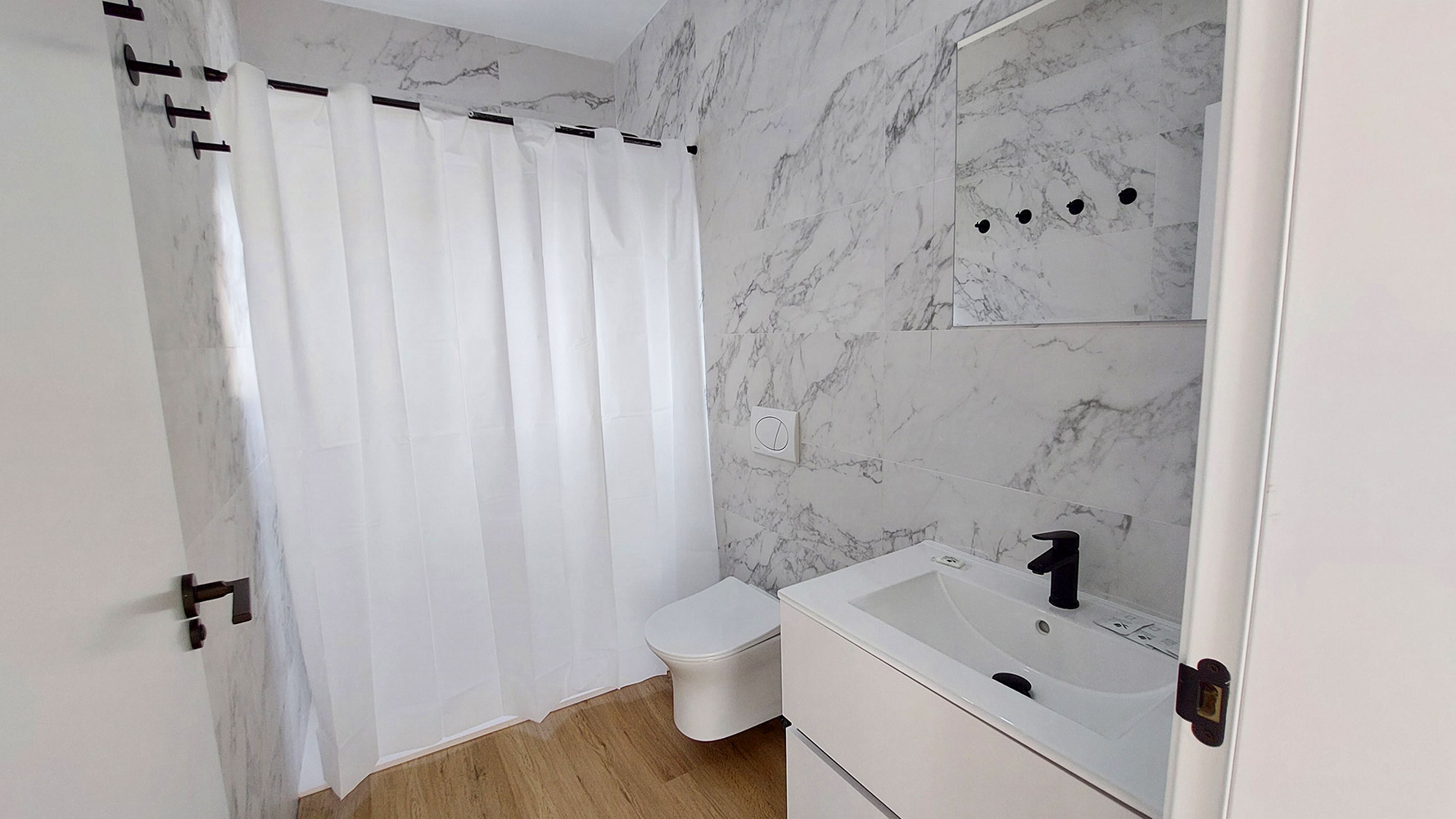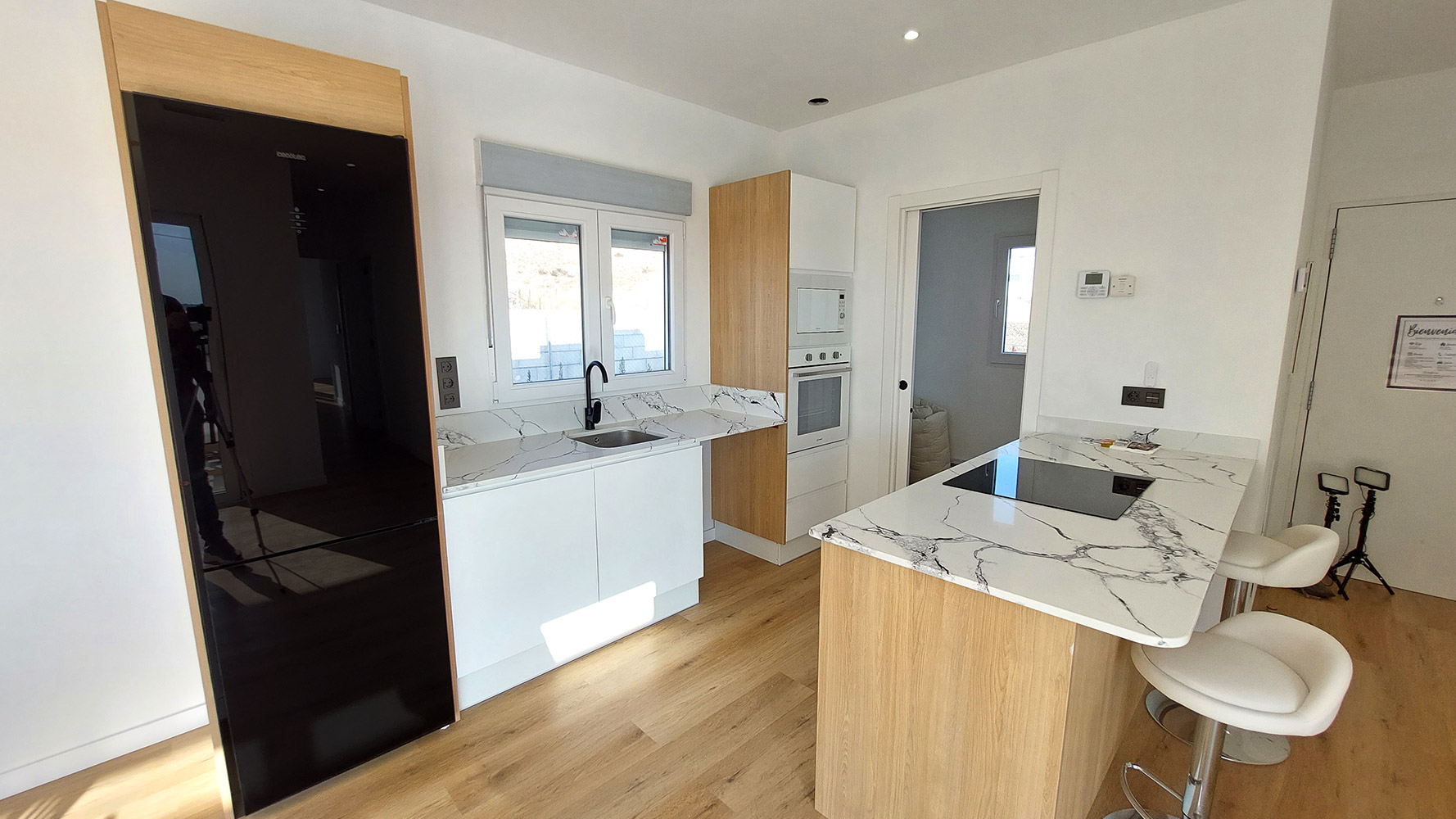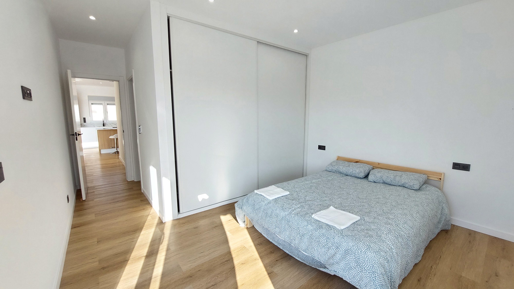 The house has a constructed area of 145m2, distributed on a single floor, which sits on a flat plot of 840m2. Upon entering through the main door, we find the spacious living-dining room and to the right, the American kitchen, which comes fully equipped. On the left, we find two bedrooms (one of them, the main one, with its own bathroom). Crossing the living-dining room, we reach the other two bedrooms, separated by a bathroom with a shower.