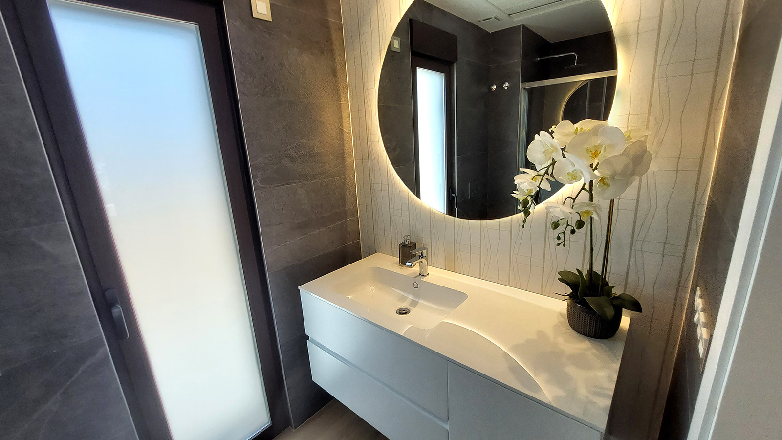 Modern villas located in a quiet area of Finestrat, just 3km from the centre of Benidorm and 4km from Playa de Poniente. In addition, they are surrounded by two golf courses: Villaitana Golf and Puig Campana Golf, for lovers of this sport.