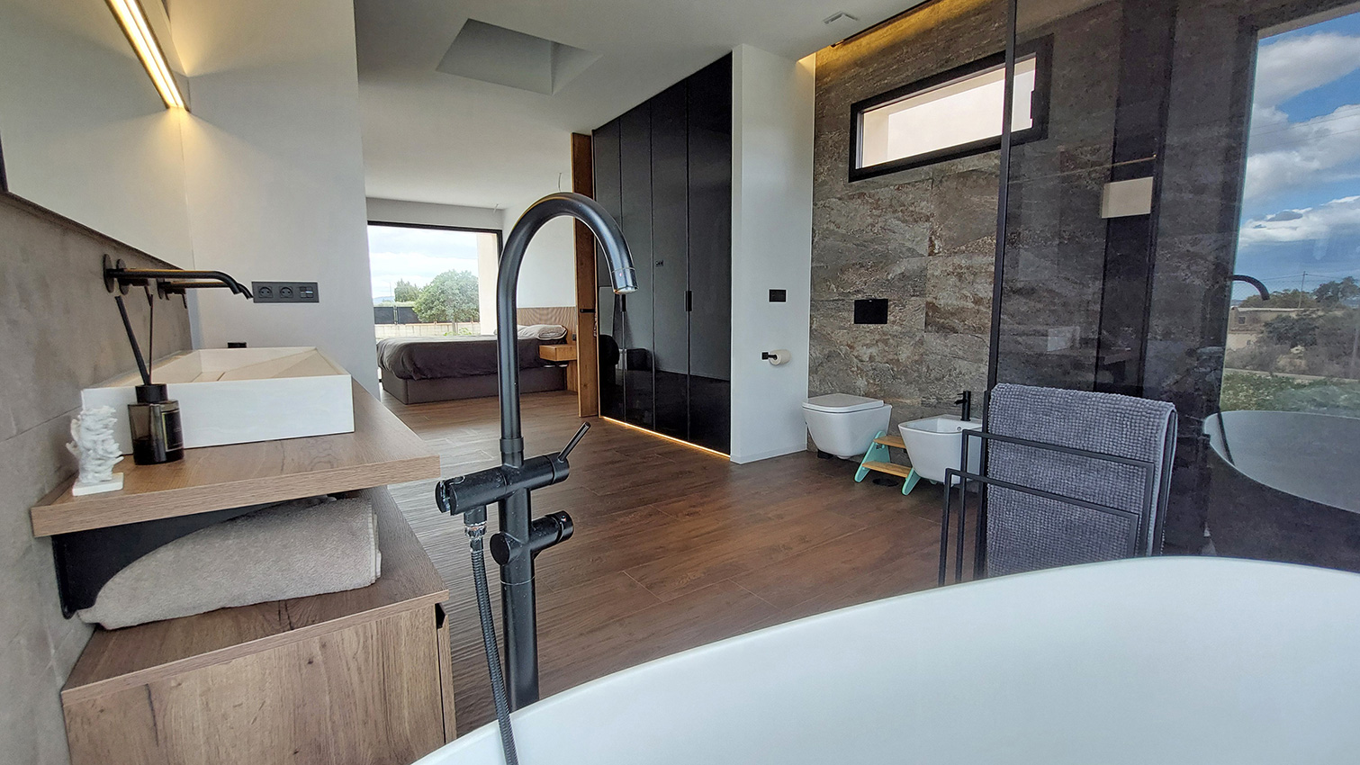 Some features: Mains electricity, economical irrigation water treated on-site with a 1,000-liter tank, underfloor heating and cooling throughout the house (air source heat pump), pre-installation of air conditioning, double-glazed windows and doors with solar protection, custom-made interior woodwork, direct and indirect LED lighting, home automation system for blinds and video intercom, kitchen countertops made of highly resistant resin, and more.