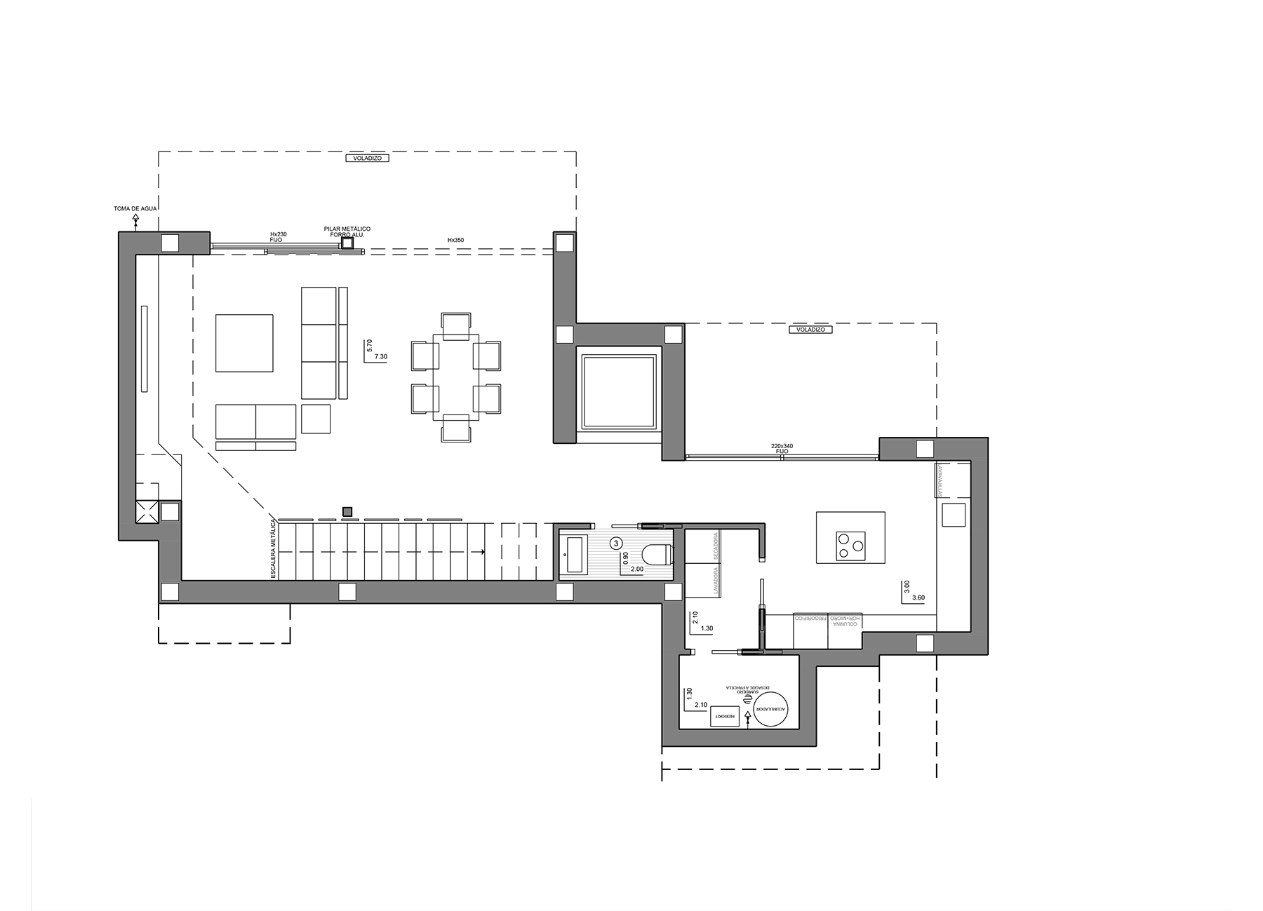 The ground floor is a large living area full of light, connected to the kitchen and the exterior, making this room the heart of the house.