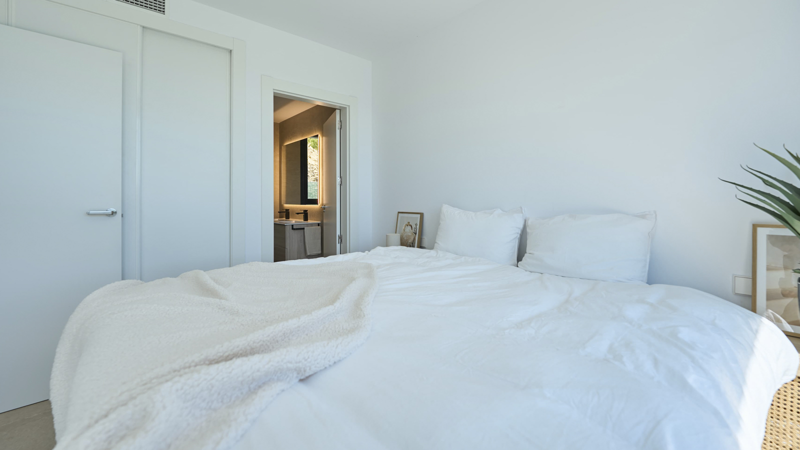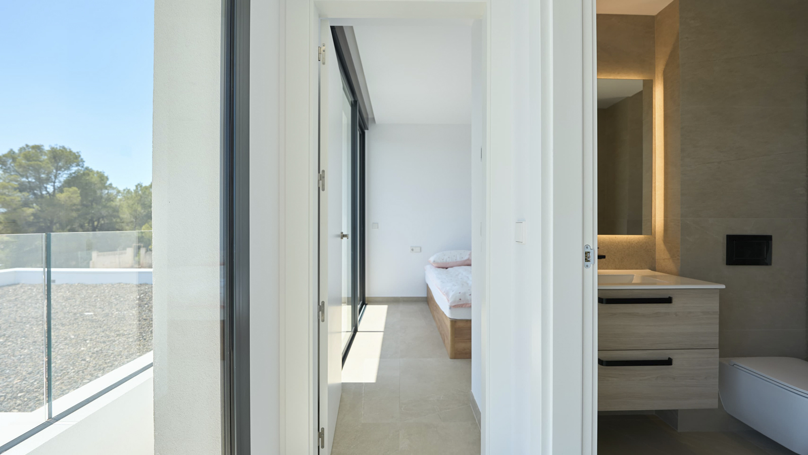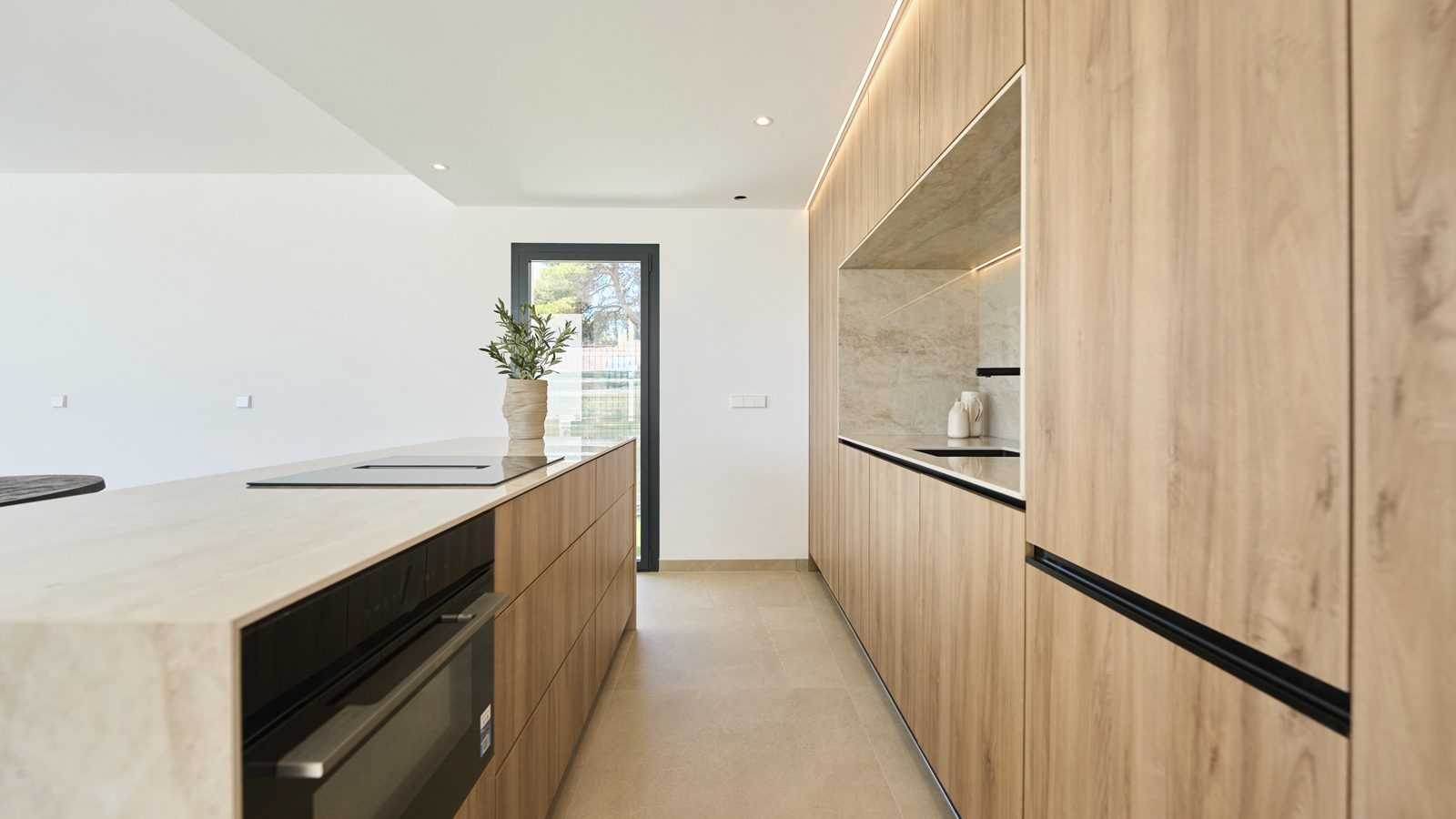 Some features: complete air conditioning system through ducts (hot-cold) and with individual temperature control in each room, air conditioning and hot water through aerothermal system, ventilation system with heat recovery providing air quality and savings, 3.6 kW photovoltaic energy panels, installation of a charging point for electric cars in the private parking area, kitchen equipped with high energy efficiency appliances and high-end furniture, double glazing with intermediate air chamber and solar treatment on all windows and sliding doors, exterior carpentry made of aluminium with thermal break, motorized roller blinds made of lacquered aluminium in the bedrooms, aluminium pergola and shutters in imitation wood finish, large-format porcelain flooring (90 x 90cm)…